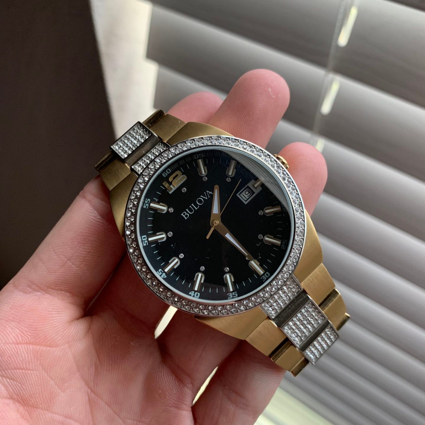 Bulova Crystal Black Dial Two Tone Steel Strap Watch for Men - 98B235