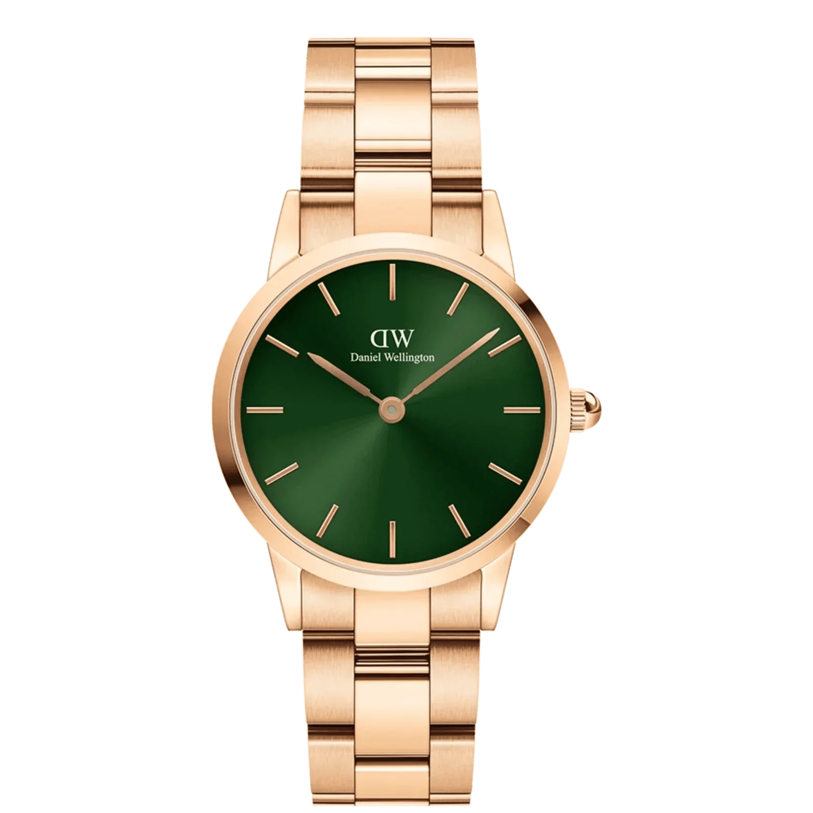 Daniel Wellington Ladies Rose Gold Iconic Link Emerald Watch DW00100421