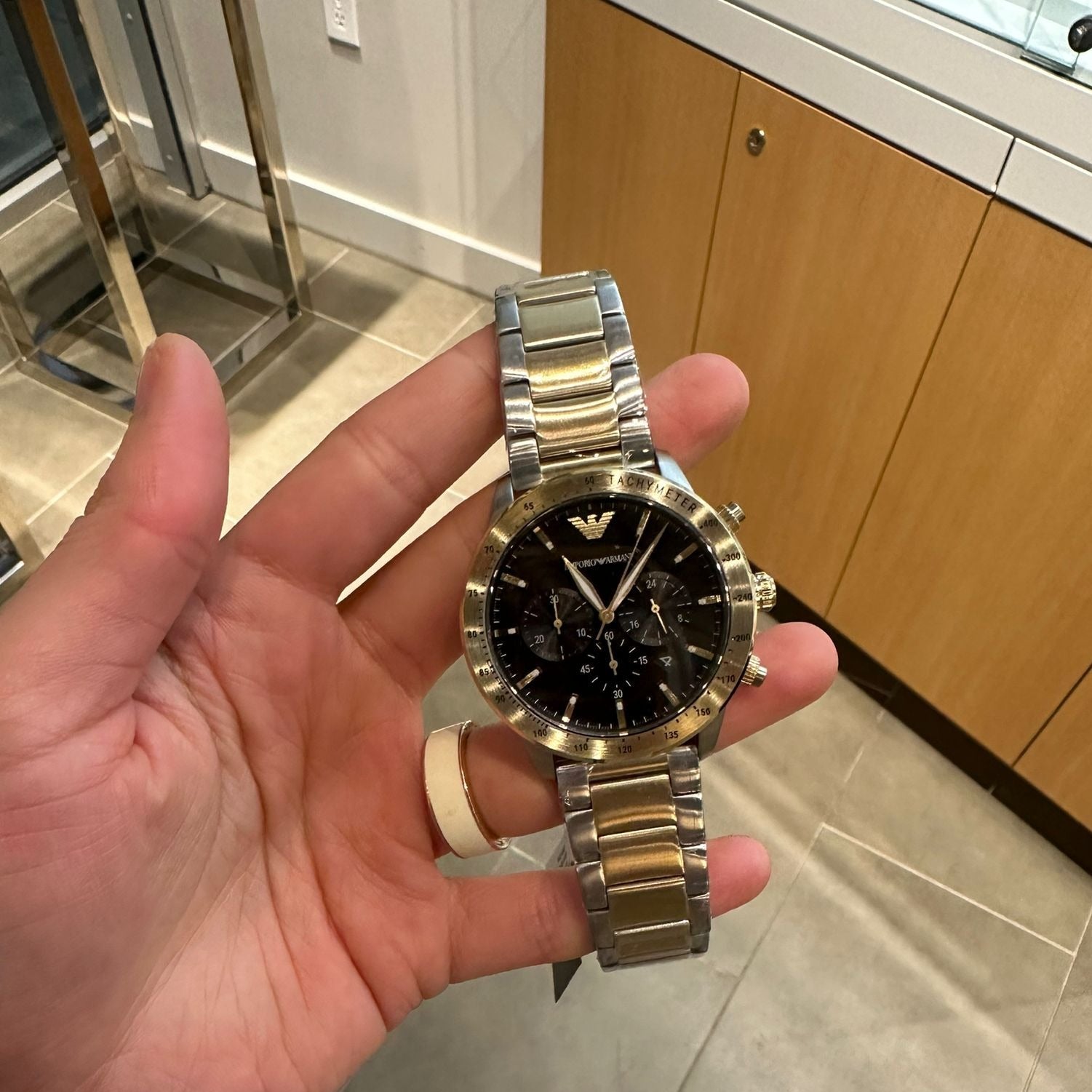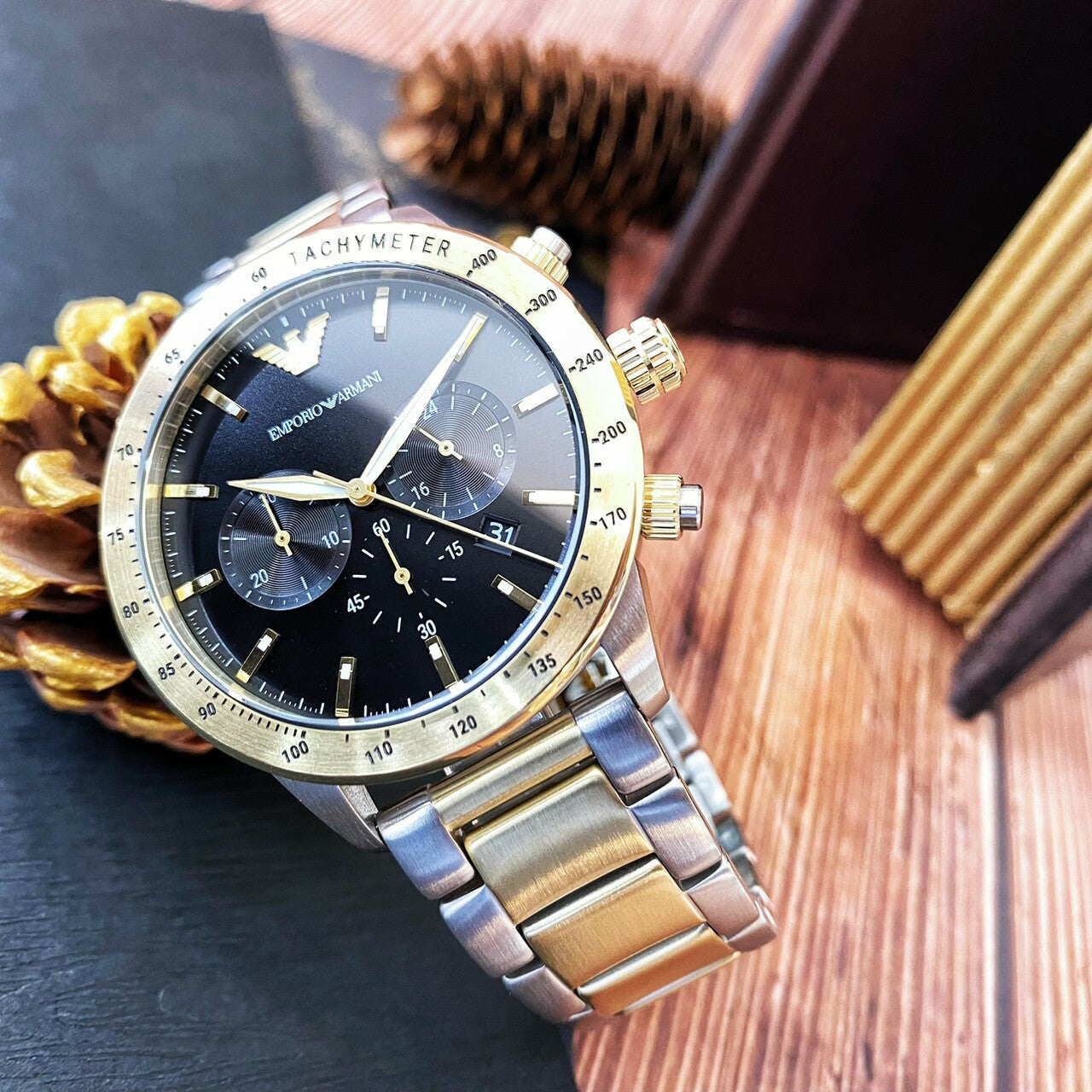 Emporio Armani Analog Chronograph Black Dial Two Tone Steel Strap Watch For Men - AR11521