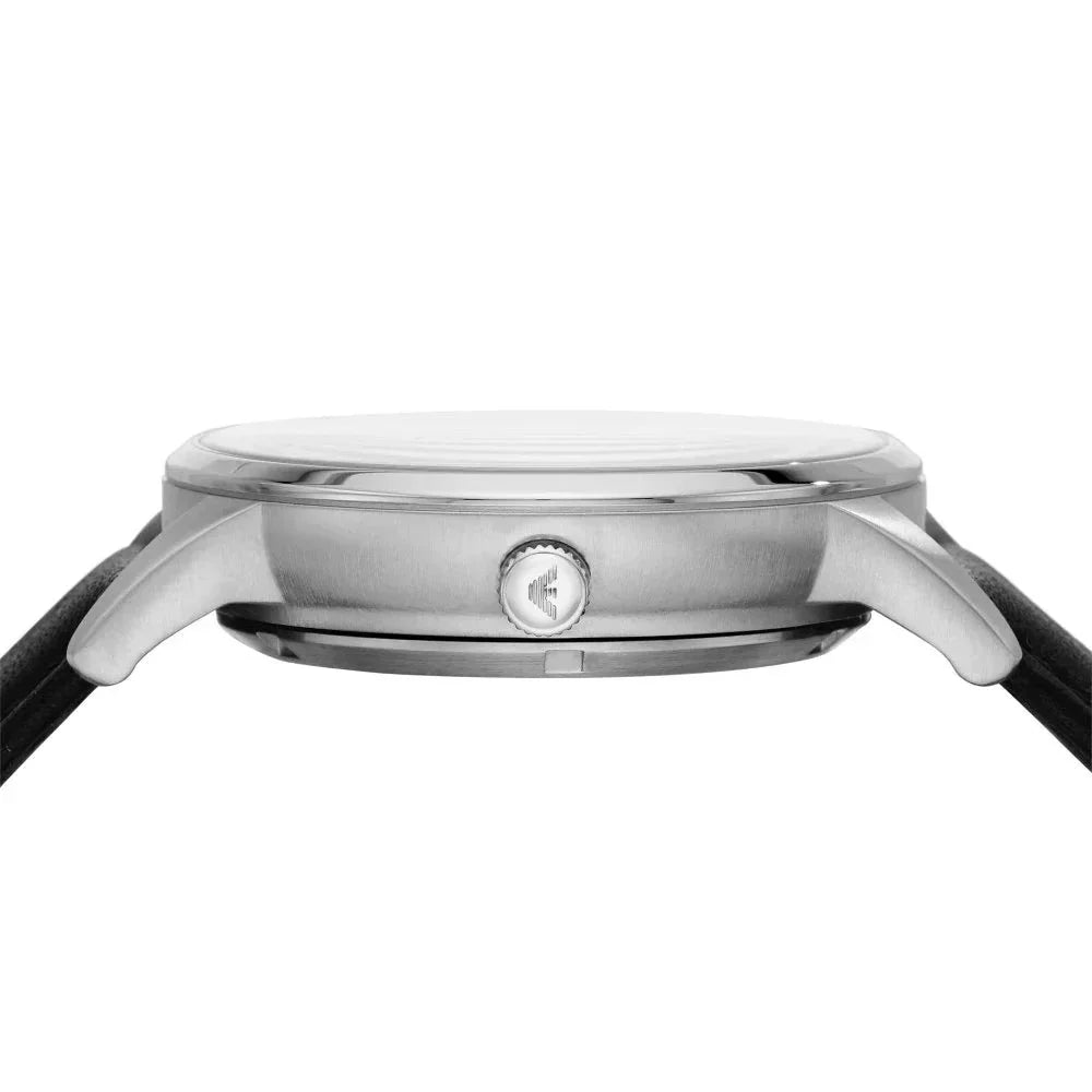 Emporio Armani Meccanico Skeleton Automatic Black Dial Black Leather Strap Watch for Men - AR60038