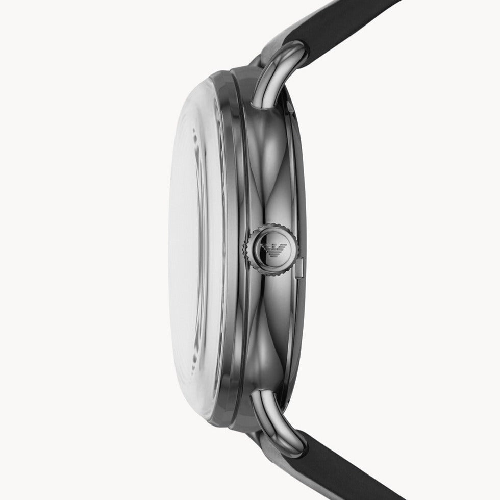 Emporio Armani Meccanico Skeleton Black Dial Black Leather Strap Watch For Men - AR60026