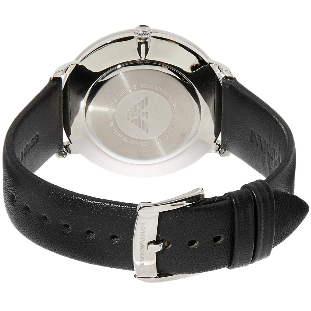 Emporio Armani Modern Slim Quartz Grey Dial Black Leather Strap Watch For Men - AR11162