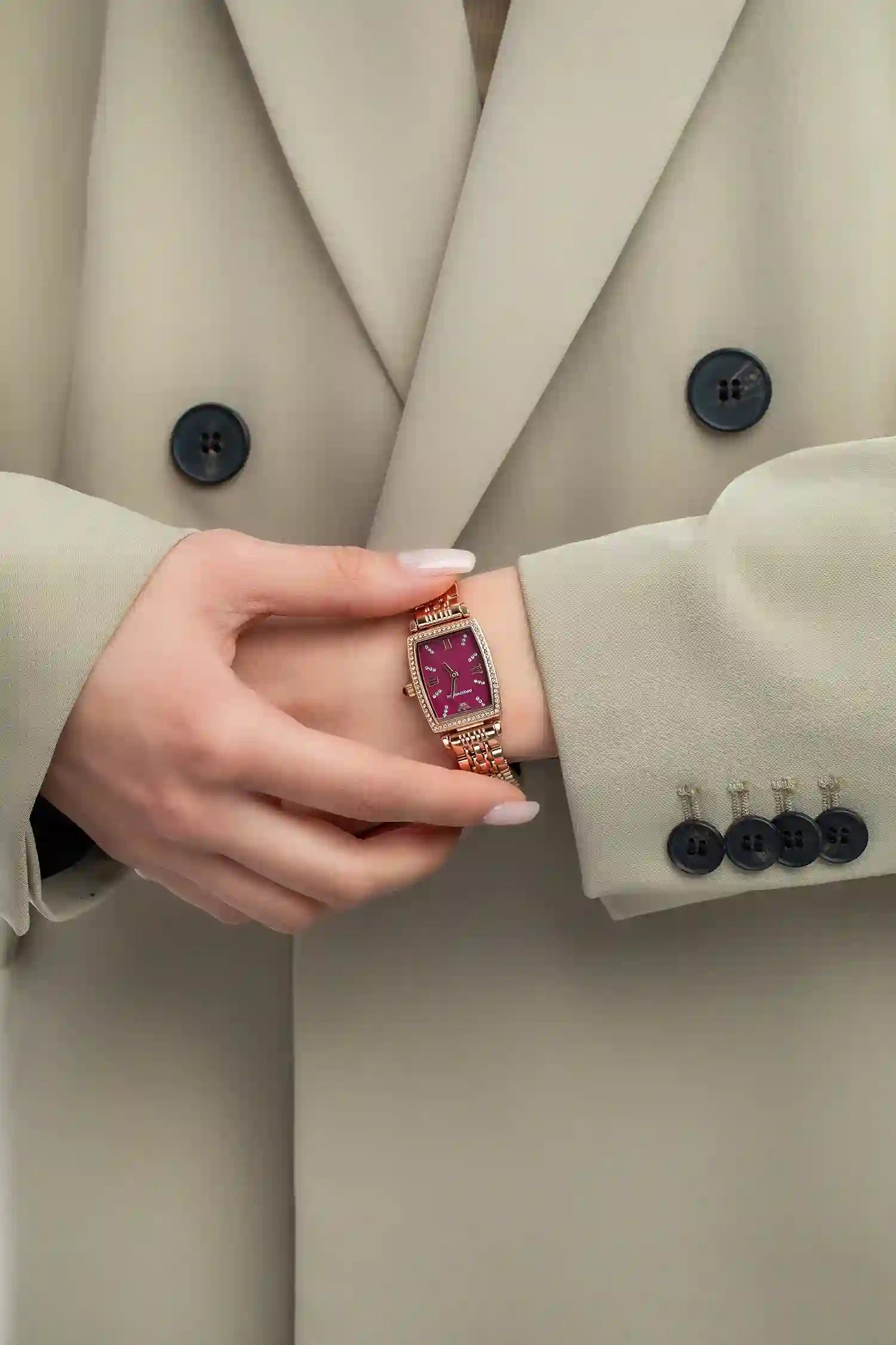 Emporio Armani Two Hand Diamonds Burgundy Dial Rose Gold Steel Strap Watch For Women - AR11488
