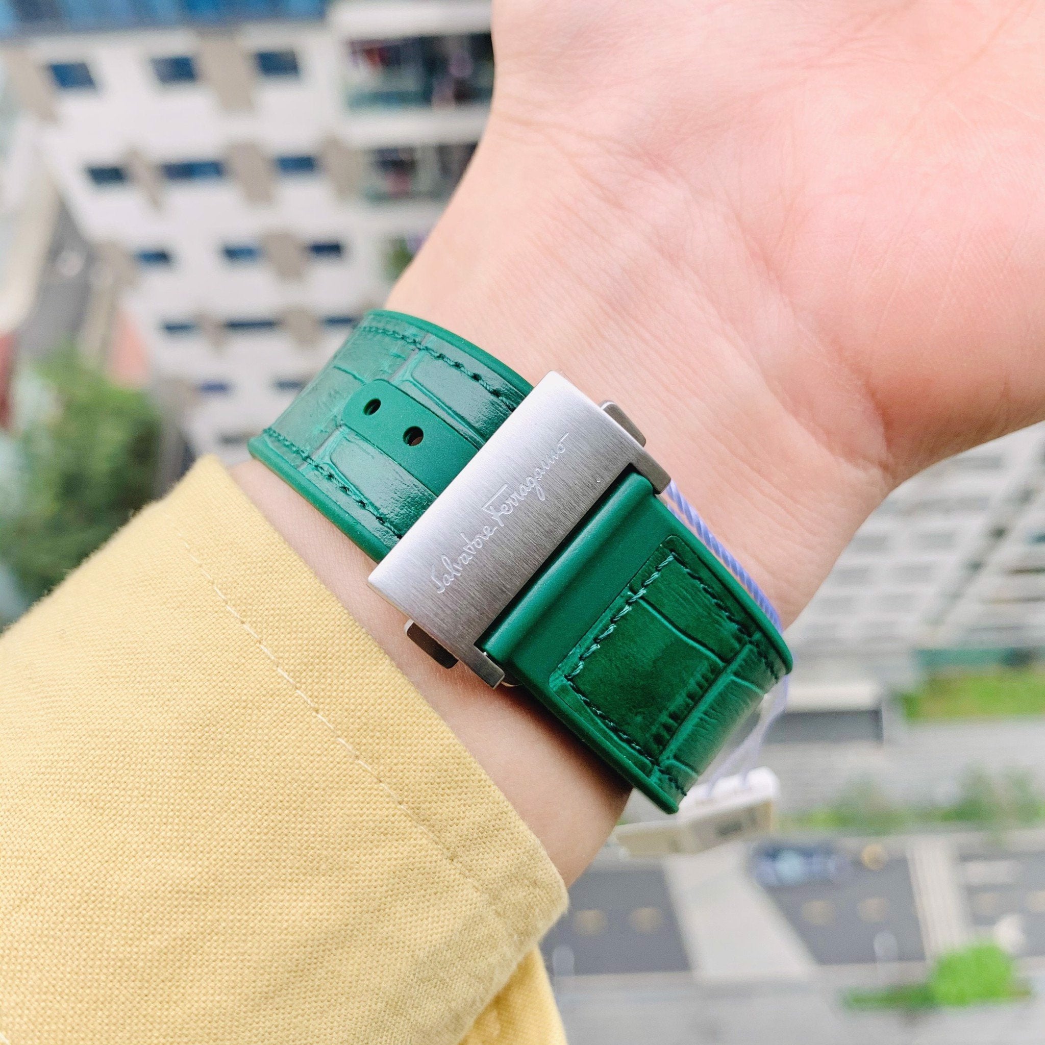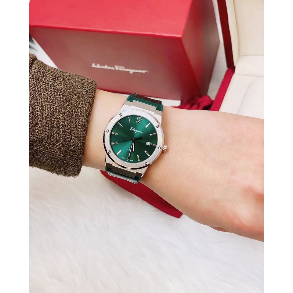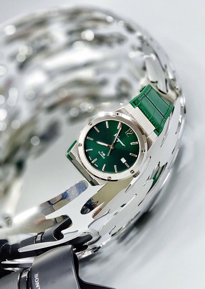 Salvatore Ferragamo F-80 Classic Green Dial Green Leather Strap Watch for Men - SFDT00119