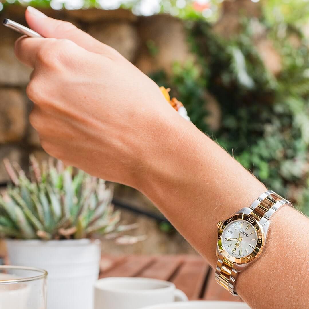 Tag Heuer Aquaracer Diamonds Mother of Pearl Dial Two Tone Steel Strap Watch for Women - WBD1421.BB0321