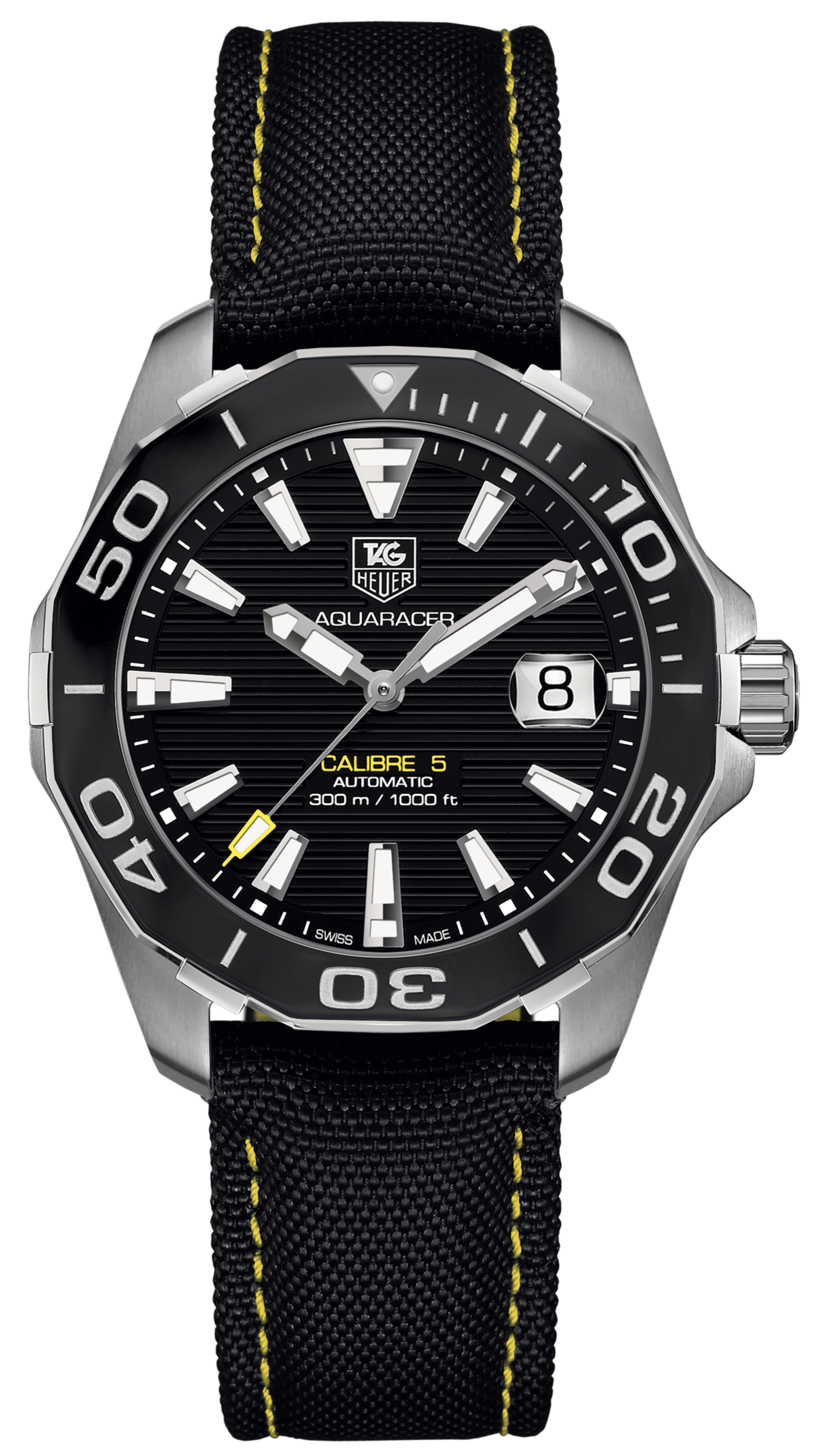 Tag Heuer Aquaracer Calibre 5 Automatic Black Dial Black Nylon Strap Watch for Men - WAY211A.FC6362