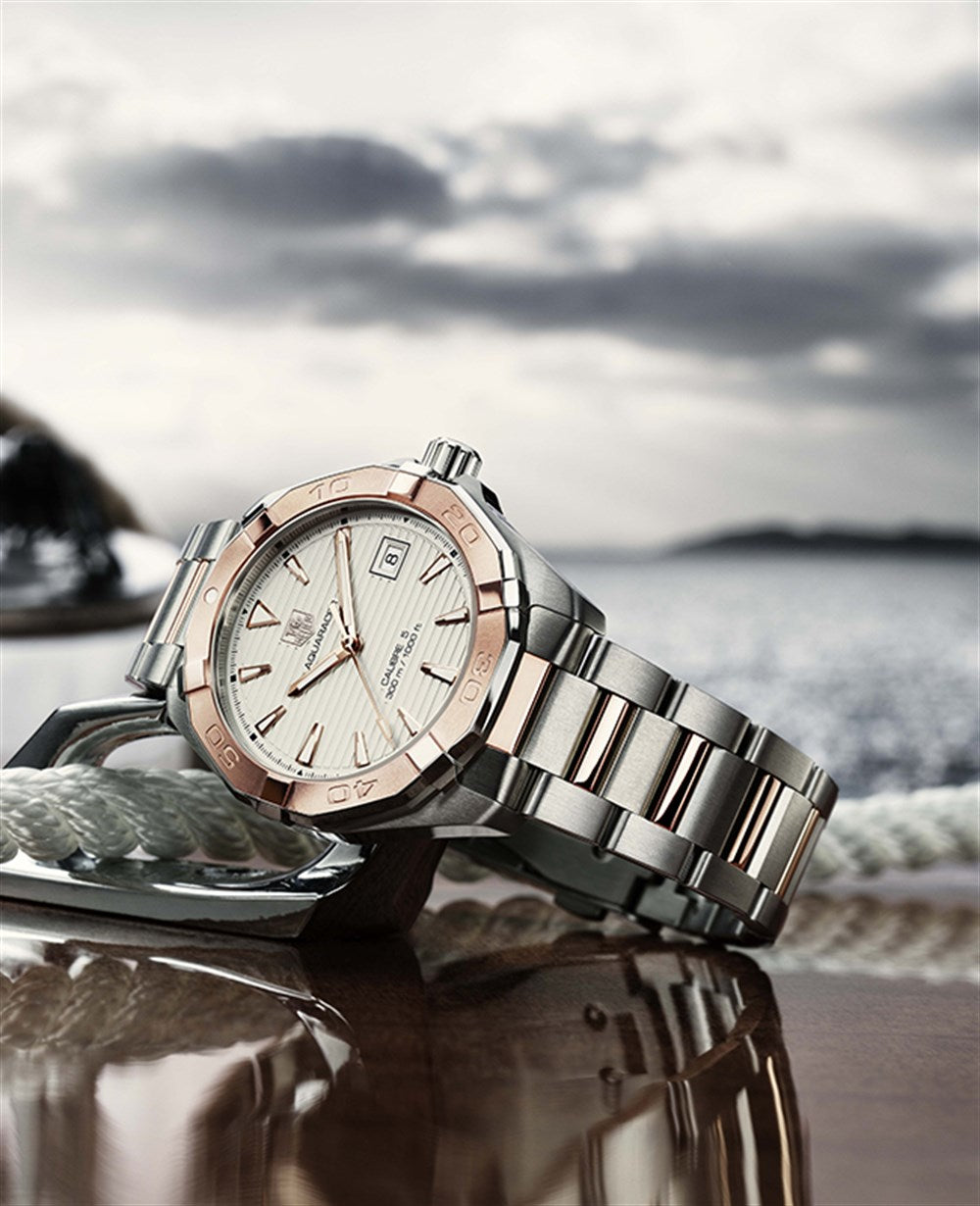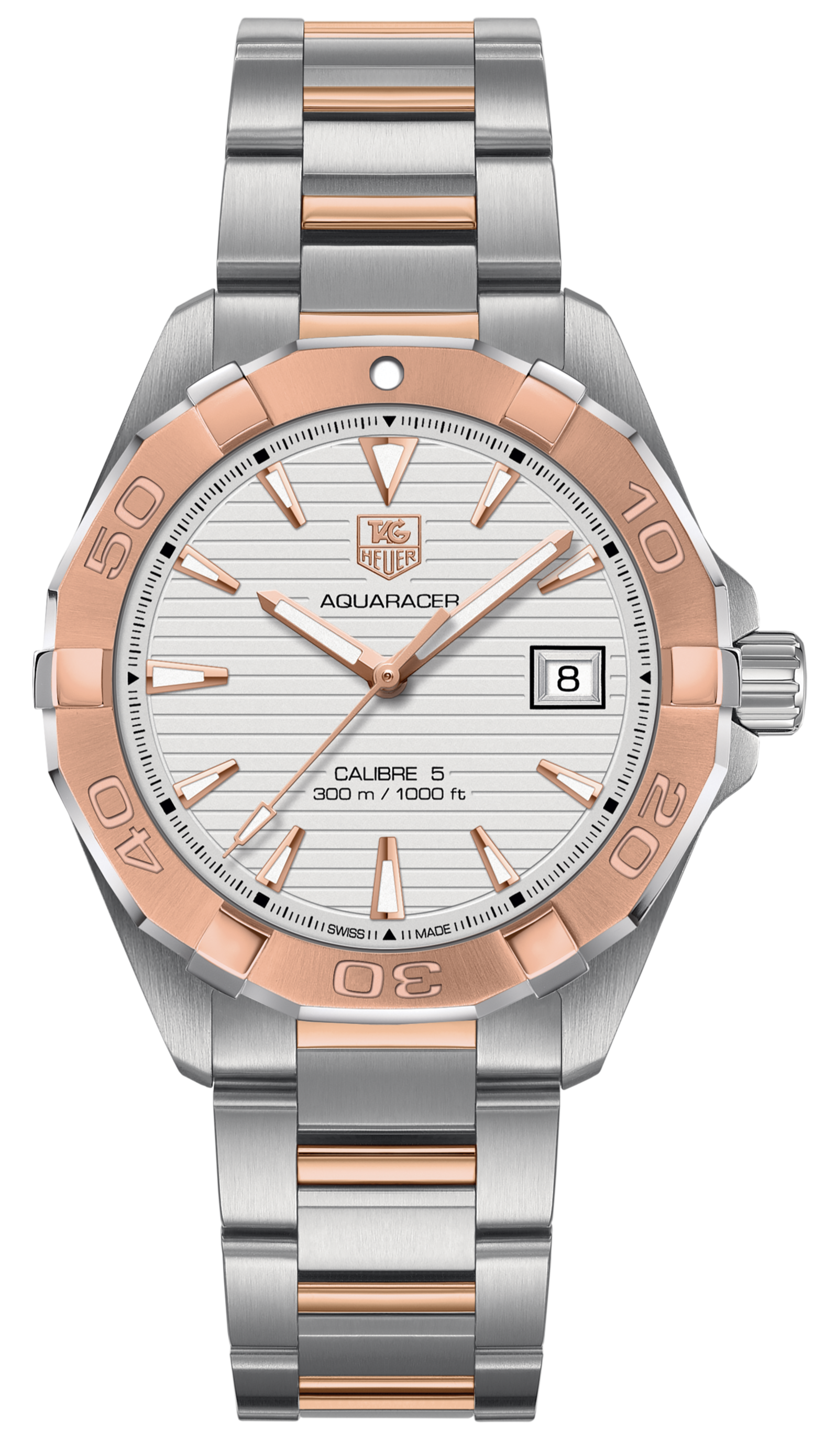 Tag Heuer Aquaracer Calibre 5 Automatic White Dial Two Tone Steel Strap Watch for Men - WAY2150.BD0911