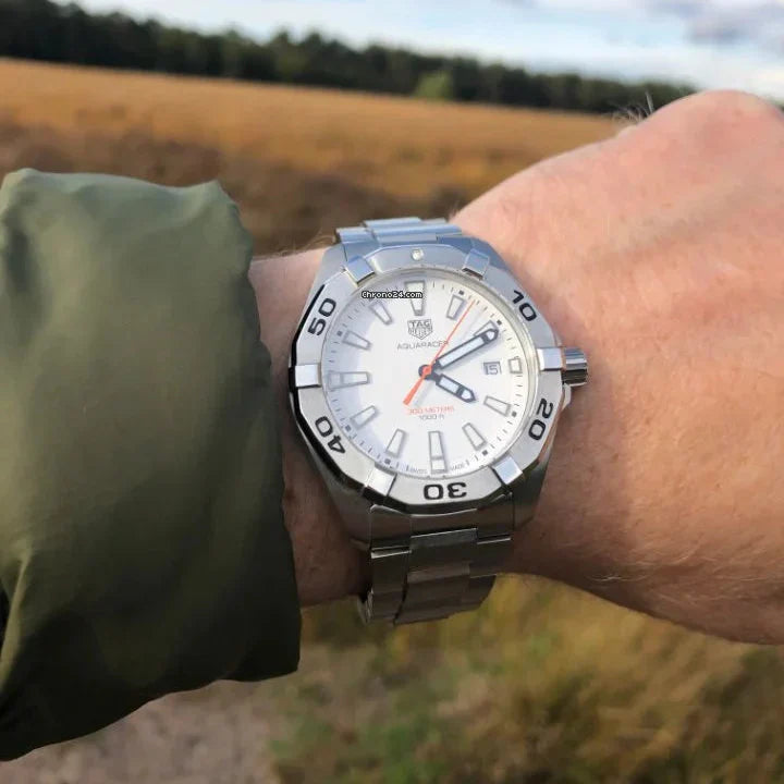 Tag Heuer Aquaracer Quartz White Dial Silver Steel Strap Watch for Men - WBD1111.BA0928