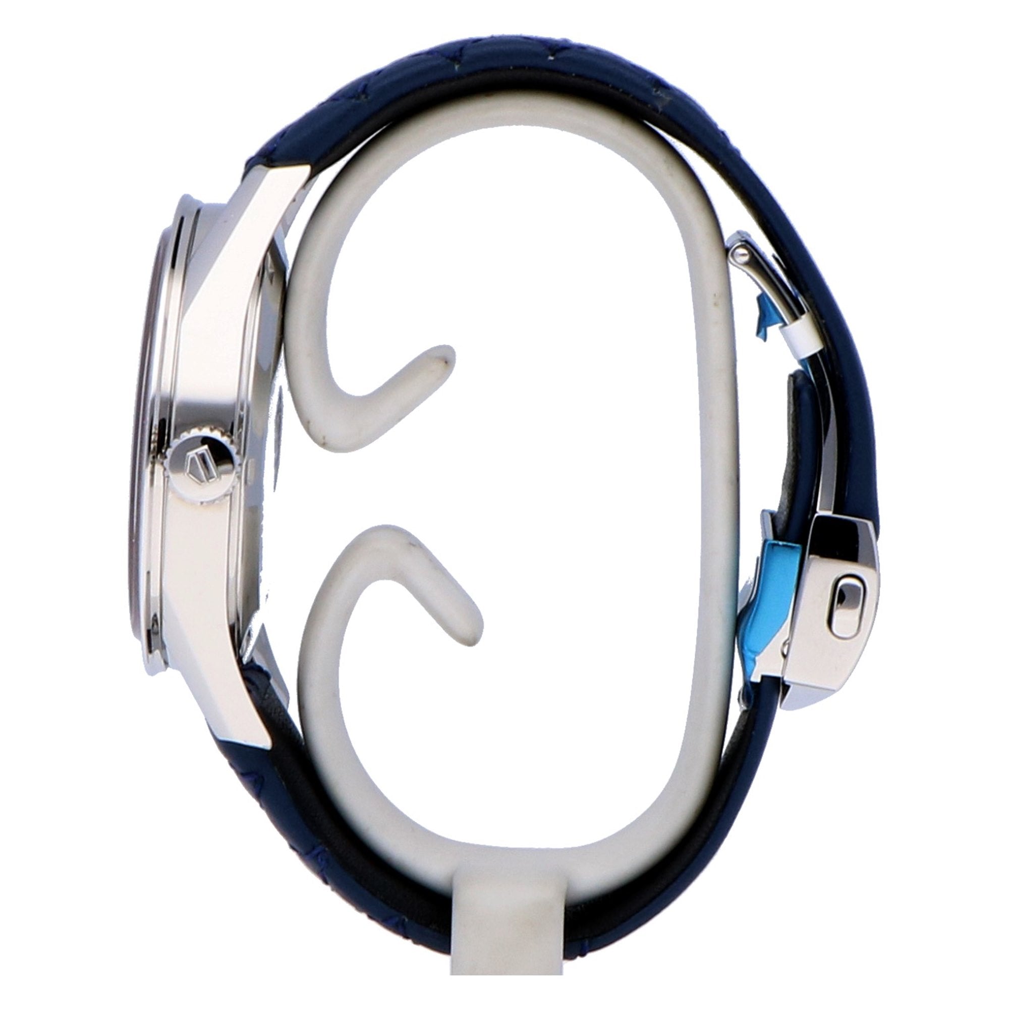 This Tag Heuer Carrera watch features a stunning blue diamond dial and a luxurious blue leather strap. The quartz movement ensures accurate timekeeping, while the diamonds add glamour to any outfit. The perfect choice for any fashion-forward woman looking for a touch of elegance in her timepiece.