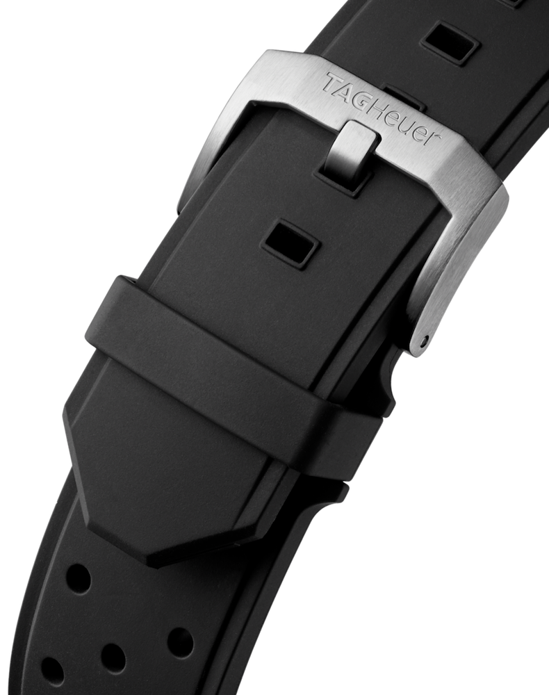 With a 43mm black sand-blasted DLC stainless steel body and fixed black ceramic tachymeter bezel, this TAG Heuer Formula 1 Indy 500 Limited Edition watch provides an elegant aesthetic just like that of the race cars that inspired it. The striking black dial is beautifully detailed with rhodium plated indexes, Superluminova coated hour and minute hands, two chronograph sub dials and a date window at 4 o clock. The dial also features a unique brick motif to honour “The Brickyard”, the nickname for the Indy racetrack. The functions are powered by a Swiss made quartz movement which is kept hidden behind a closed case back engraved with a stunning Indy 500 decoration. To complete the look of this TAG Heuer Formula 1 Limited Edition watch, a sophisticated black rubber strap is added alongside a classic black DLC pin buckle.